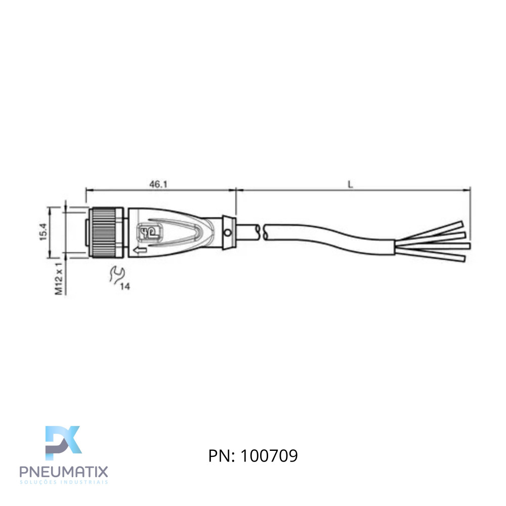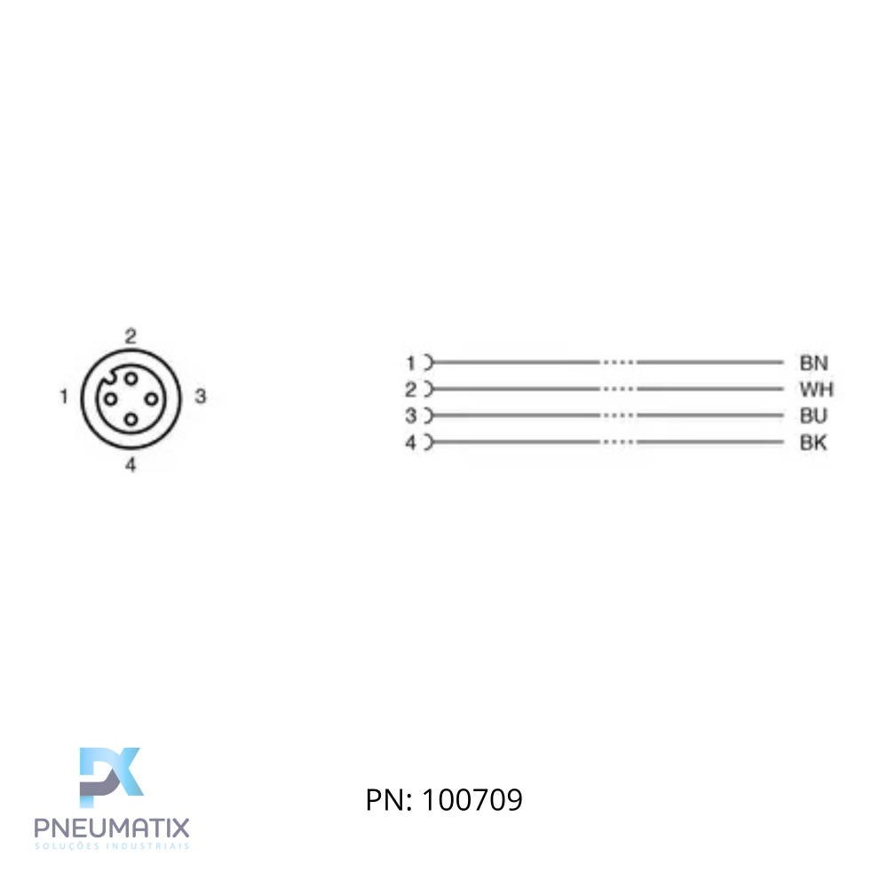 CABO C/CONECTOR 2MTS FEMEA RETO M12 4 POLOS COR CINZA PVC V1-G-2M-PVC PN:035071 PEPPERL