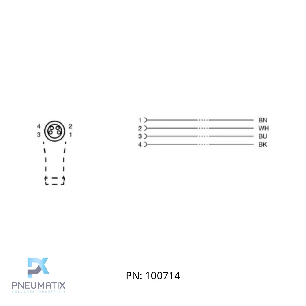 CABO C/CONECTOR 5MTS FEMEA ANGULAR M8 4 POLOS COR CINZA PVC V31-WM-5M-PVC PN:109033 PEPPERL