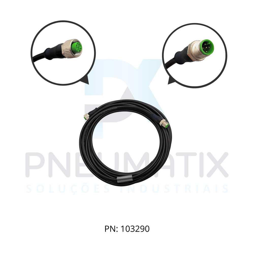 CABO C/CONECTOR 6MTS MACHO RETO M8 FEMEA RETO M12 MONTADO PUR/PVC COR CINZA 788241-2200060 MURRELEKTRONIK