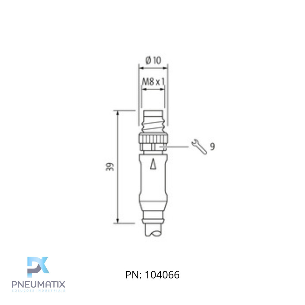 Conector reto macho – conector reto fêmea M8 – M8, 3 polos Carcaças de pl..