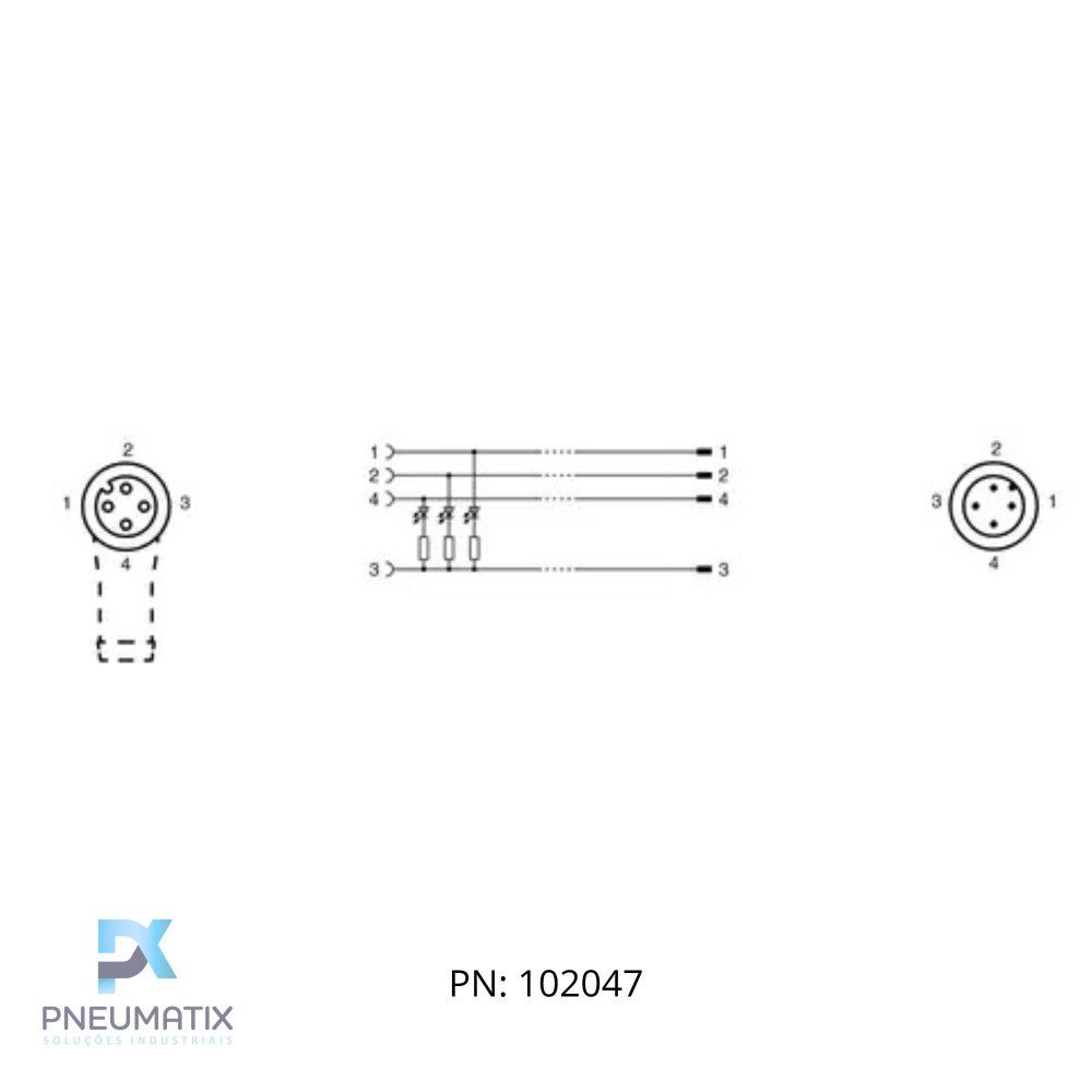 CABO C/CONECTOR 5MTS 4 POLOS M12 C/LED COR PRETO PUR V1-W-E8-BK5M-PUR-U-V1-G PN:252990 PEPPERL