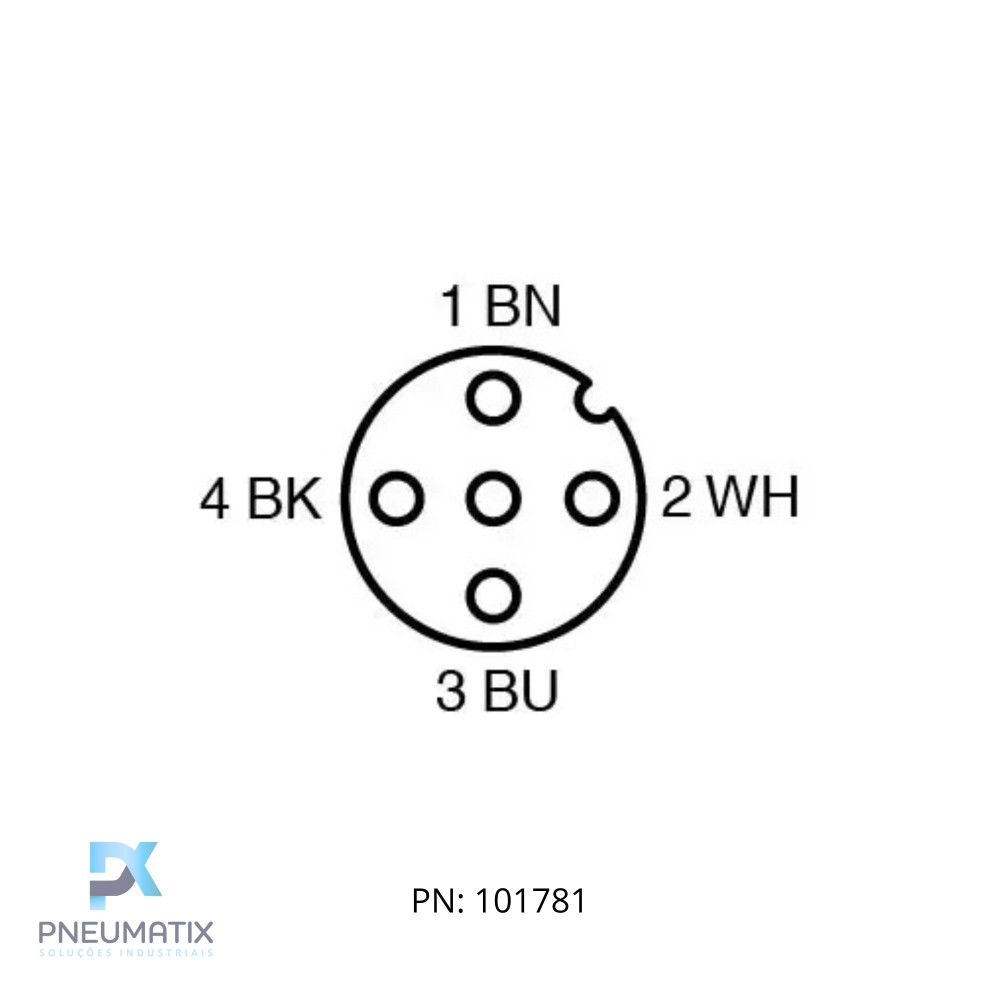 CONECTOR FEMEA ANGULAR M12 4P PARAFUSAVEL IP67 FIO 0,75MM2 TENSAO MAX.250VAC/VCC 4A MAX.C/LED V1-WV2A PN:117131 PEPPERL