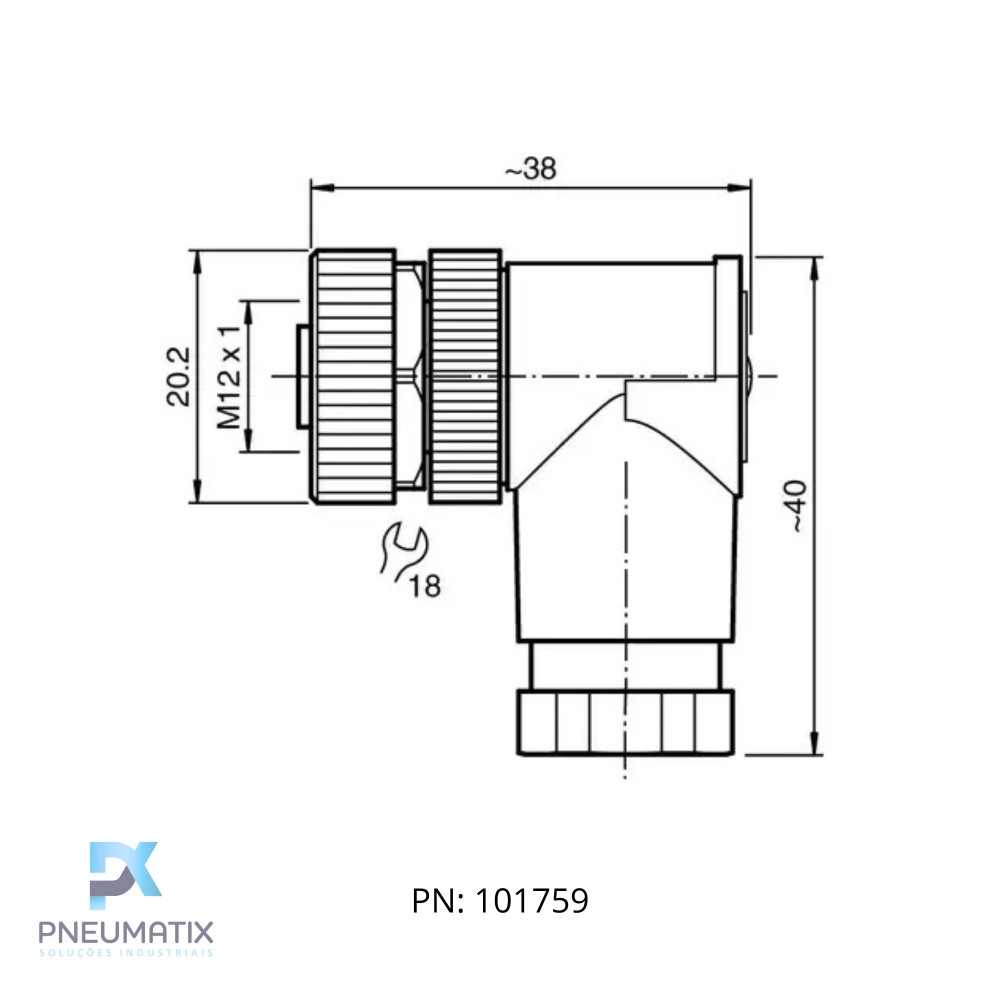 CONECTOR FEMEA ANGULAR M12 4 POLOS PARAFUSAVEL IP67 FIO 0,75MM2 TENSAO MAX.250VAC/VCC 4A V1-W-BK PN:224884 PEPPERL