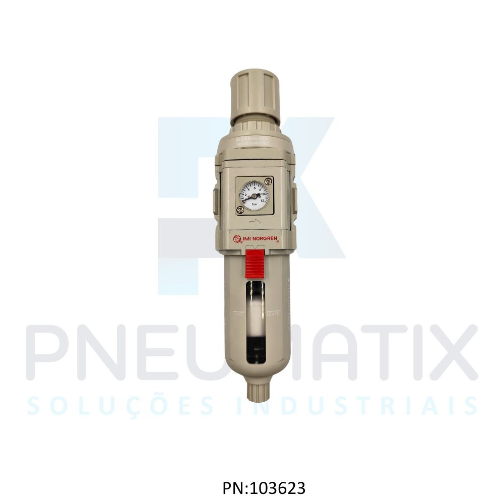 FILTRO REGULADOR DE PRESSAO R.1/2 BSP COPO POLICARBONATO DRENO AUTOMATICO 5 MICRAS C/MANOMETRO B49G-4GK-AW1-RMG NORGREN