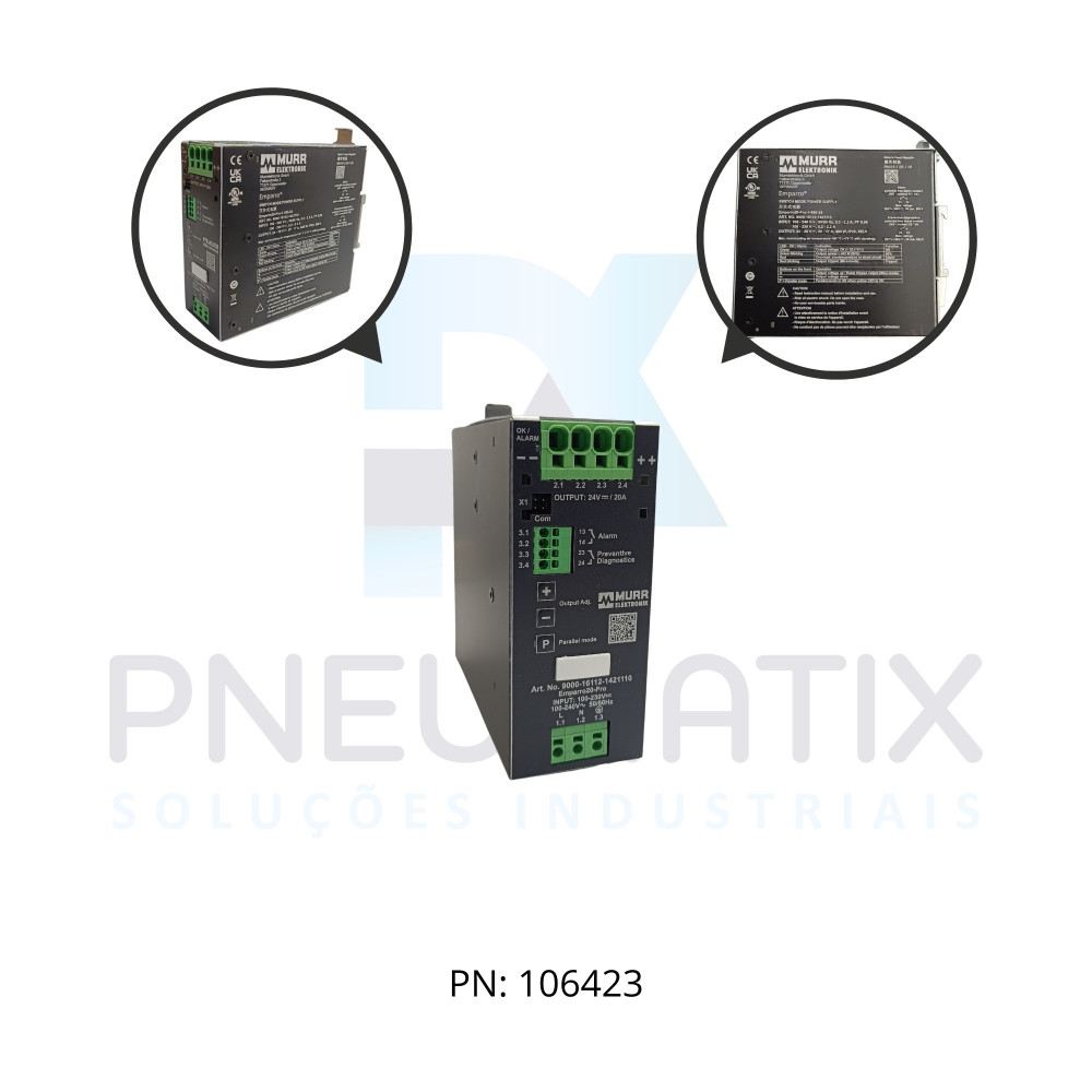 FONTE CHAVEADA MONOF. EMPARRO20 PRO ALIM. 85-265VAC/90-250VDC SAIDA 24-28VCC CORRENTE 20A 916112-1421110 MURRELEKTRONIK