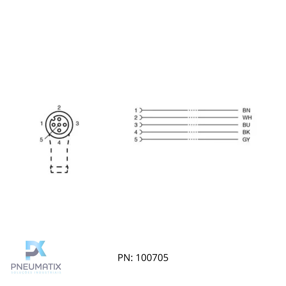 CABO C/CONECTOR 10MTS FEMEA ANGULAR M12 5 POLOS COR CINZA PVC V15-W-10M-PVC PN:109483 PEPPERL