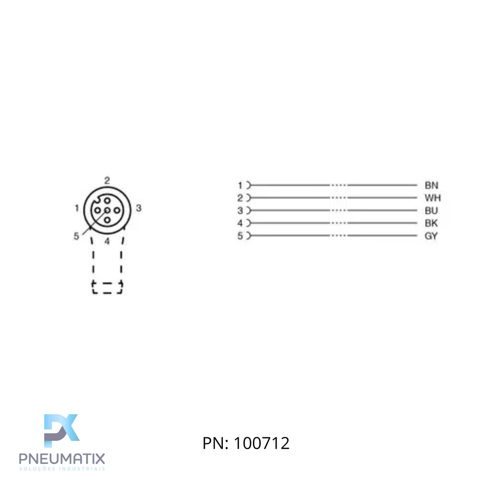 CABO C/CONECTOR 2MTS FEMEA ANGULAR M12 5 POLOS COR CINZA PUR V15-W-2M-PUR PN:021972 PEPPERL