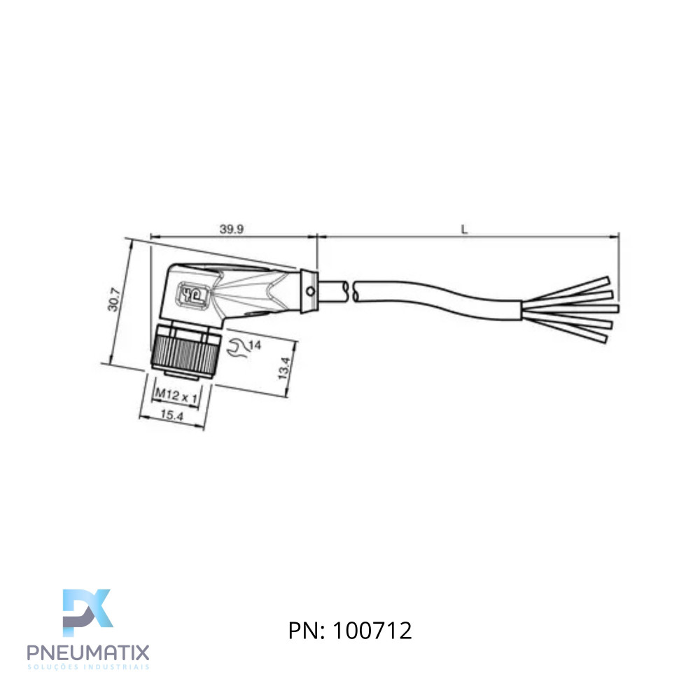 CABO C/CONECTOR 10MTS FEMEA ANGULAR M12 4 POLOS COR CINZA PUR V1-W-10M-PUR PN:040066 PEPPERL