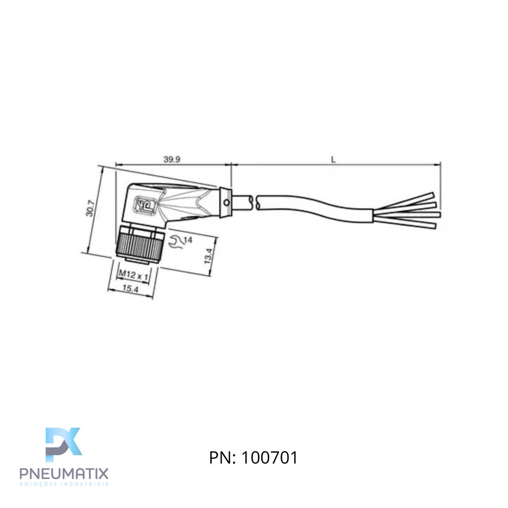 CABO C/CONECTOR 5MTS FEMEA ANGULAR M12 4 POLOS COR CINZA PVC V1-W-5M-PVC PN:032798 PEPPERL