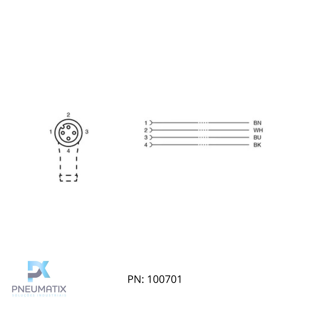 CABO C/CONECTOR 5MTS FEMEA ANGULAR M12 4 POLOS COR PRETO PUR V1-W-BK5M-PUR-U PN:217482 PEPPERL