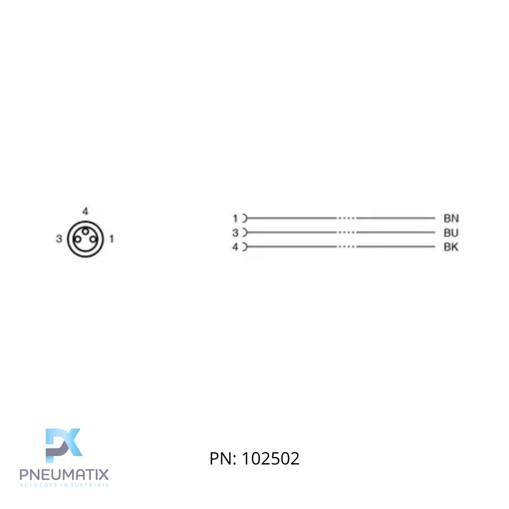 CABO C/CONECTOR 5MTS FEMEA RETO M8 3 POLOS COR PRETO PUR V3-GM-BK5M-PUR-U PN:217480 PEPPERL