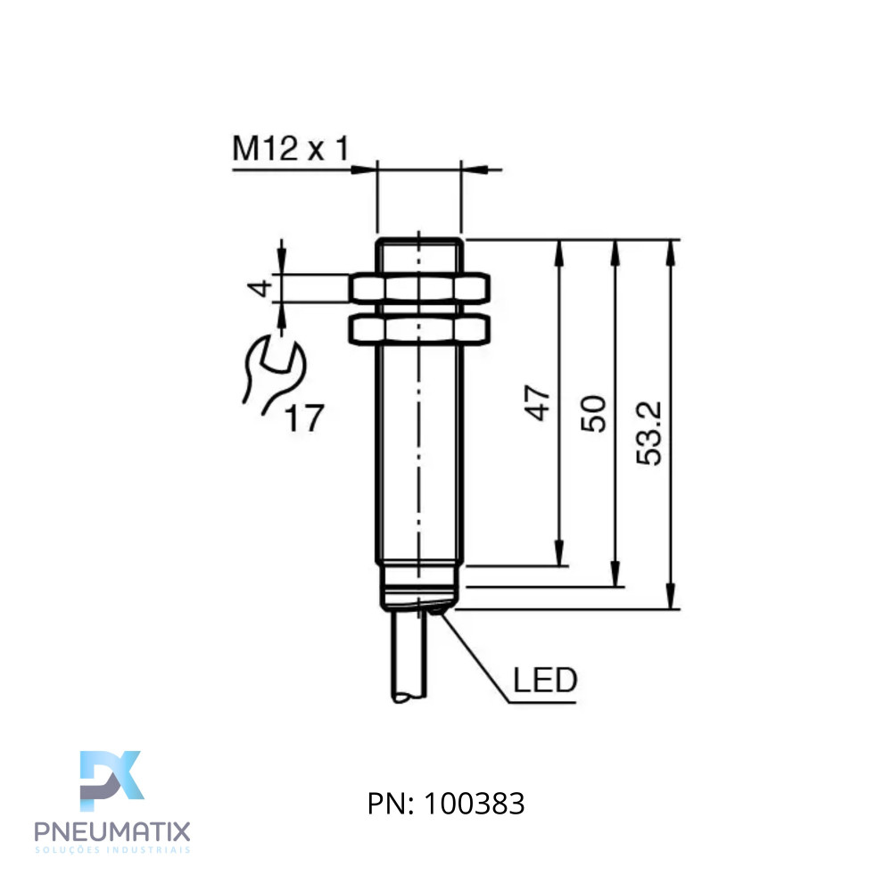 SENSOR IND.CIL.DIAM.12MM Sn:4MM FAC.ALIM.10-30VDC PNP NA CABO 2MTS NBB4-12GM50-E2 PN:326161-0002 PEPPERL
