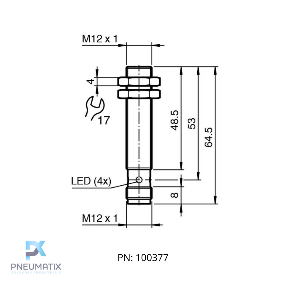 SENSOR IND.CIL.DIAM.18MM Sn:12MM N.FAC.ALIM.10-30VDC PNP NA M12 NBN12-18GM50-E2-V1 PN:326161-0130 PEPPERL