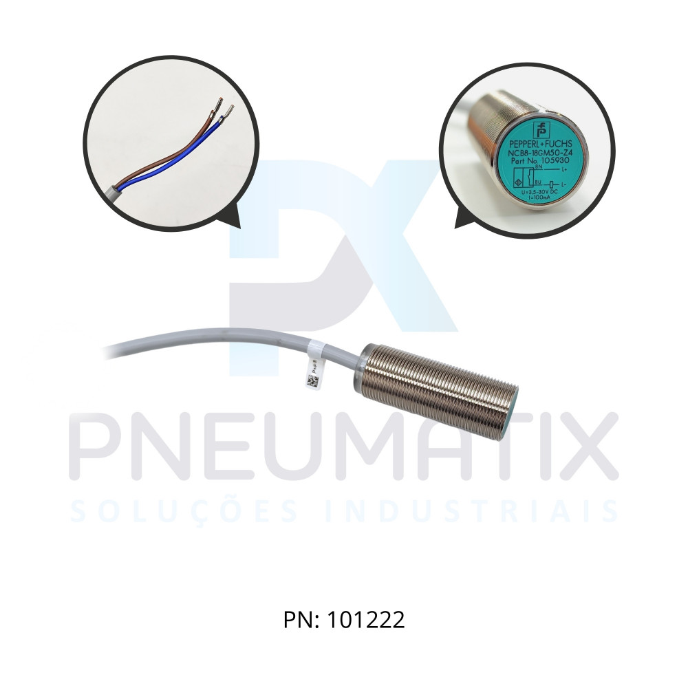 SENSOR IND.CIL.DIAM.18MM Sn:8MM FAC.ALIM.3,5-30VDC 2 FIOS NA CABO 2MTS NCB8-18GM50-Z4 PN:105930 PEPPERL