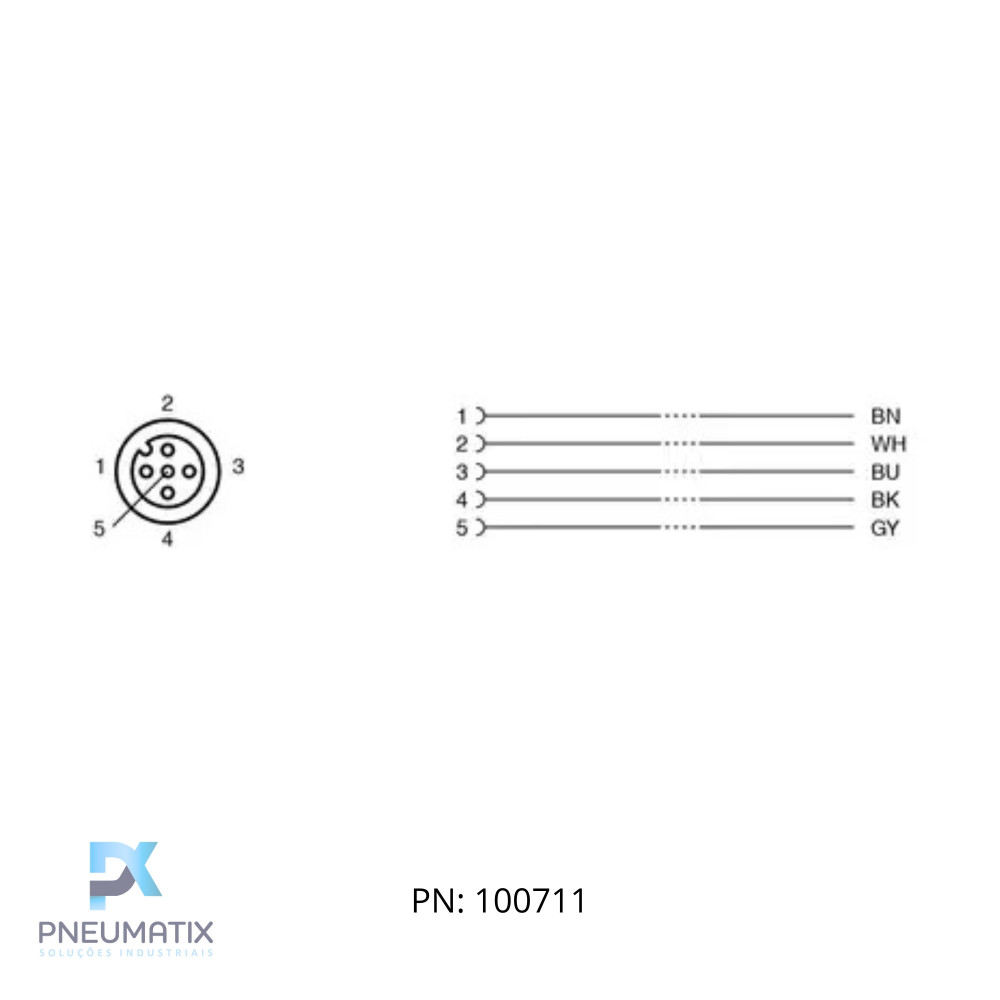 CABO C/CONECTOR 2MTS FEMEA RETO M12 5 POLOS COR CINZA PVC V15-G-2M-PVC PN:035322 PEPPERL