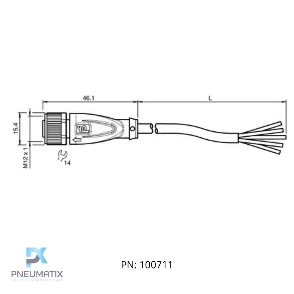 CABO C/CONECTOR 10MTS FEMEA RETO M12 4 POLOS COR CINZA PVC V1-G-10M-PVC PN:035074 PEPPERL