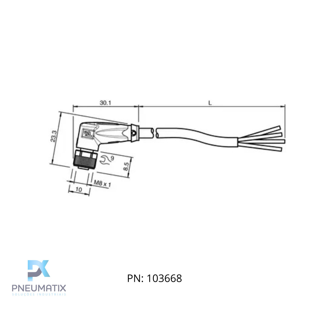 CABO C/CONECTOR 5MTS FEMEA ANGULAR M8 4 POLOS COR CINZA PUR V31-WM-5M-PUR PN:035491 PEPPERL