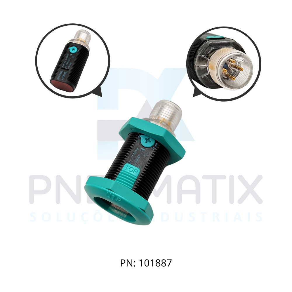 SENSOR FOTO RETROFLEXIVO P/VIDRO Sn:6,5MM TP.RETRO-REFLEX.ALIM.10-30VDC PNP GLV18-55-G/73/120 PN:214916 PEPPERL