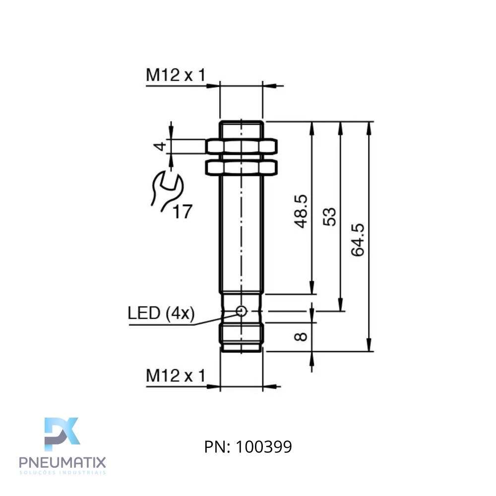 SENSOR IND.CIL.DIAM.12MM Sn:4MM FAC.ALIM.10-30VDC PNP NA/NF M12 NBB4-12GM50-A2-V1 PN:326161-0007 PEPPERL