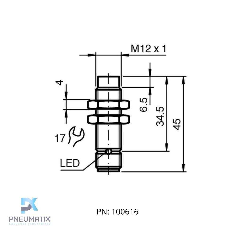 SENSOR IND.CIL.DIAM.12MM Sn:2MM FAC.ALIM.10-30VDC PNP NA CABO 2MTS NBB2-12GM50-E2 PN:326161-0028 PEPPERL